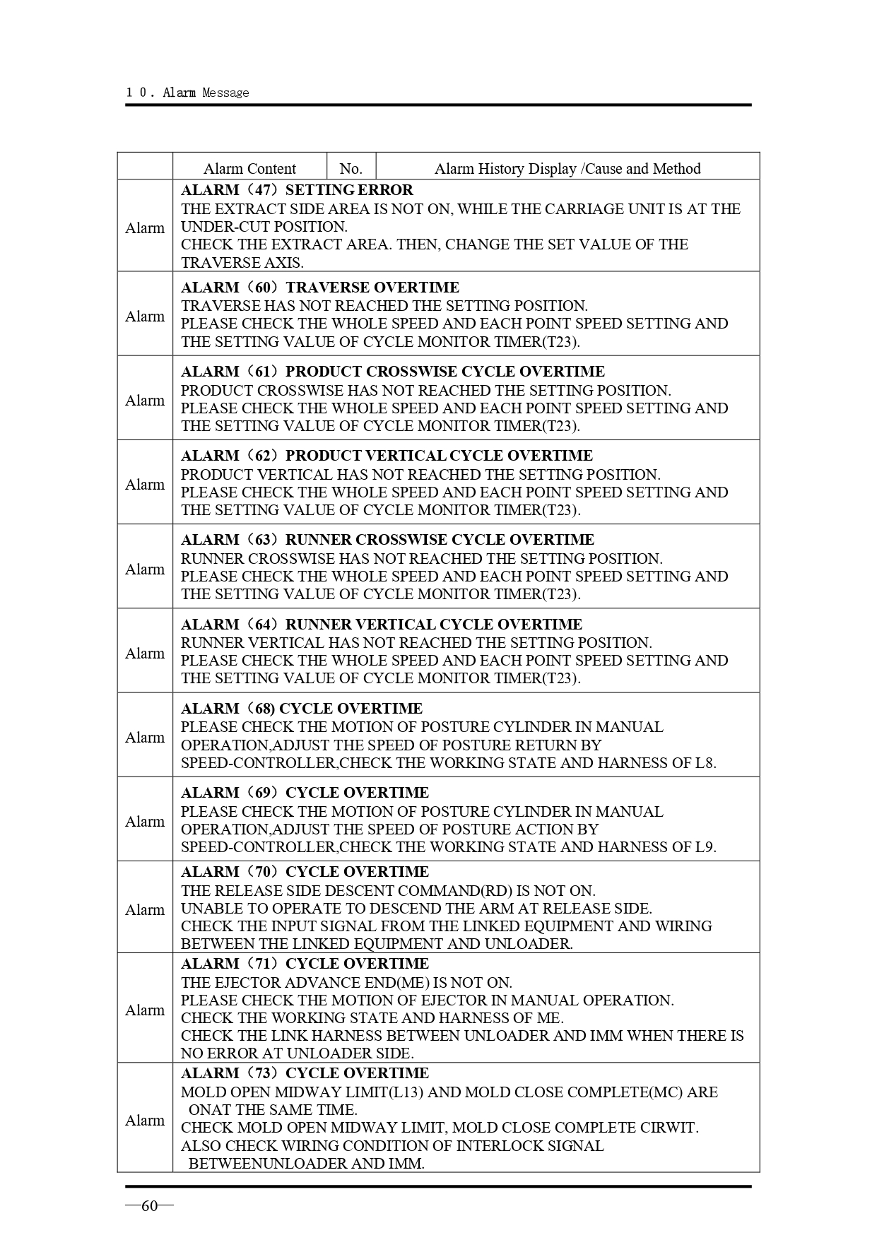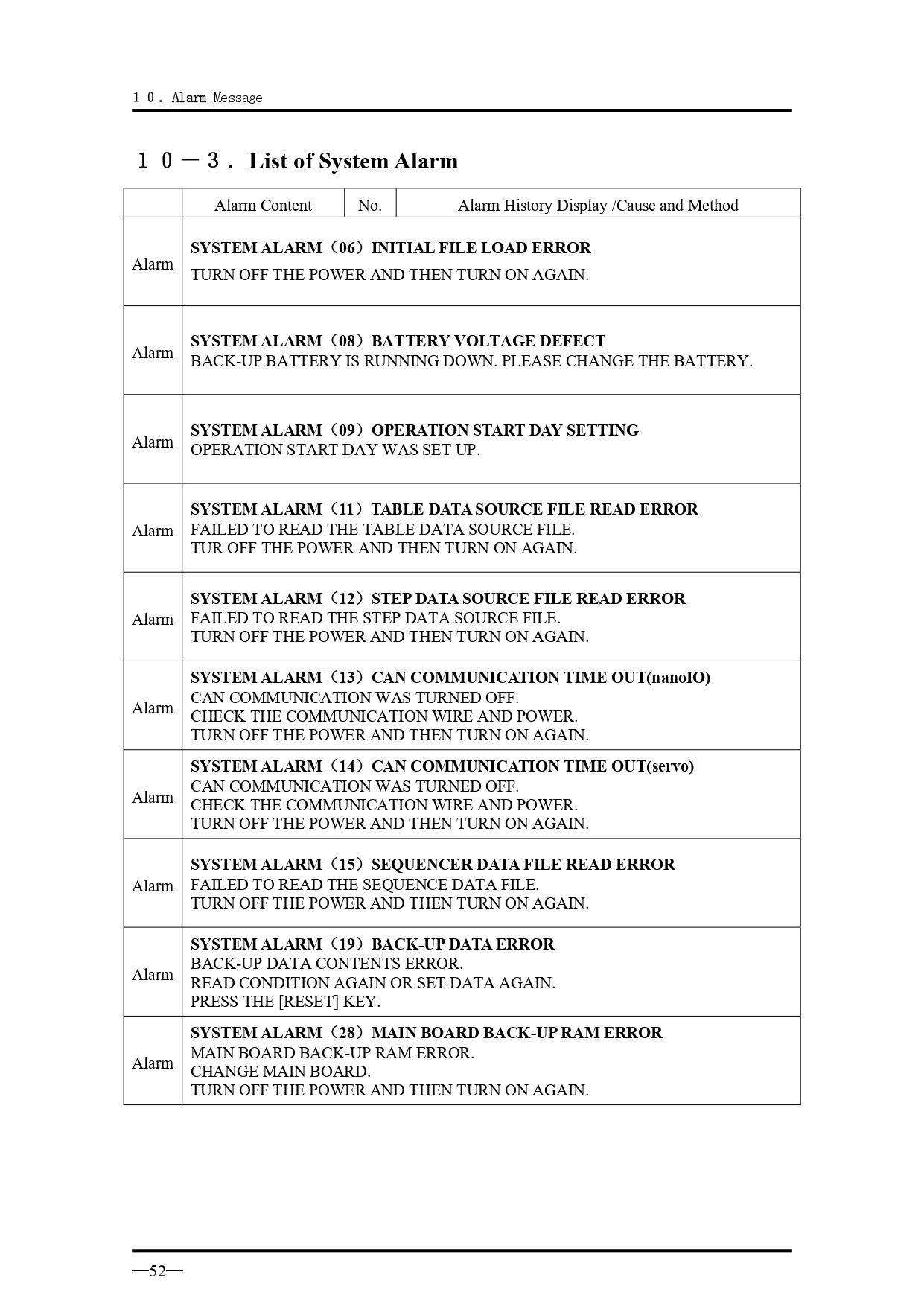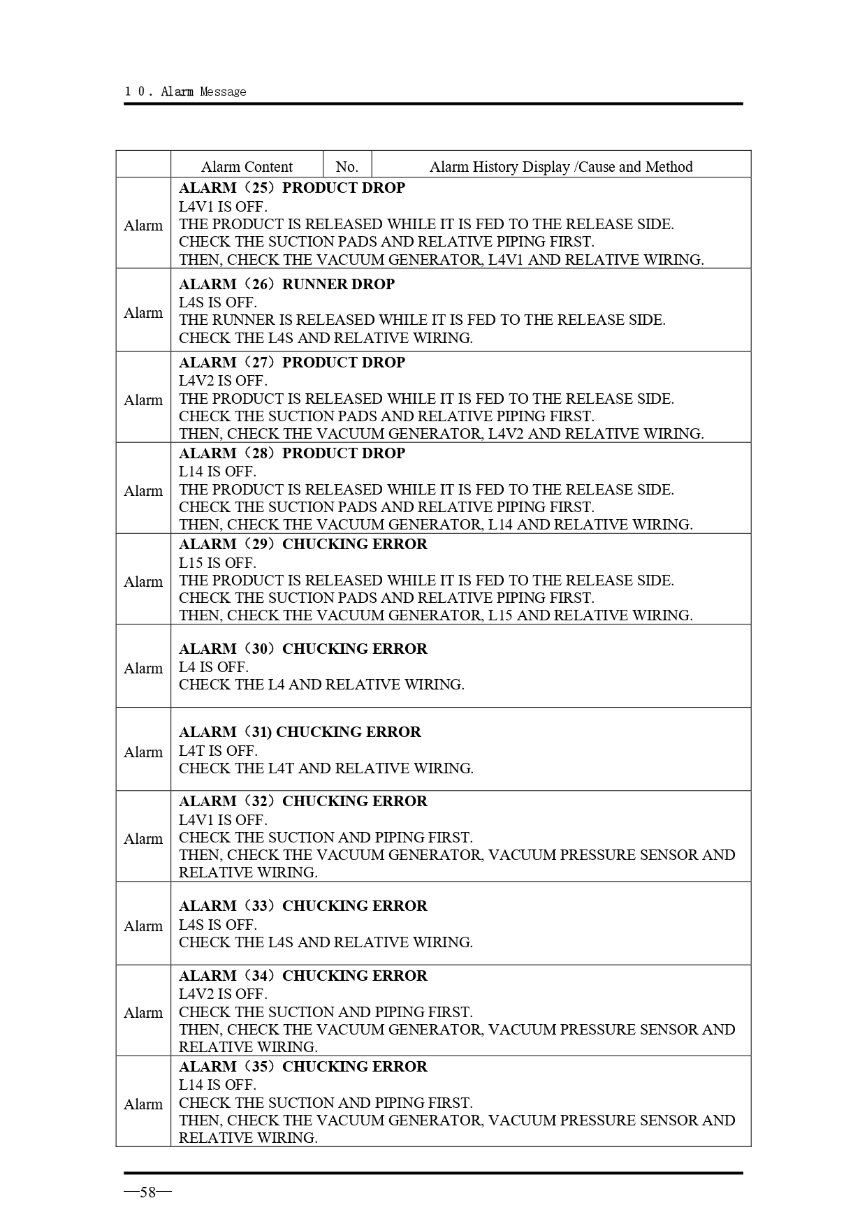คำอธิบายทั่วไปเกี่ยวกับข้อความแจ้งเตือนเมื่อเกิดความผิดปกติ สำหรับรุ่น VK Series