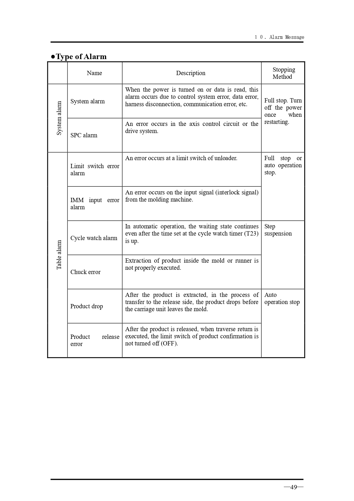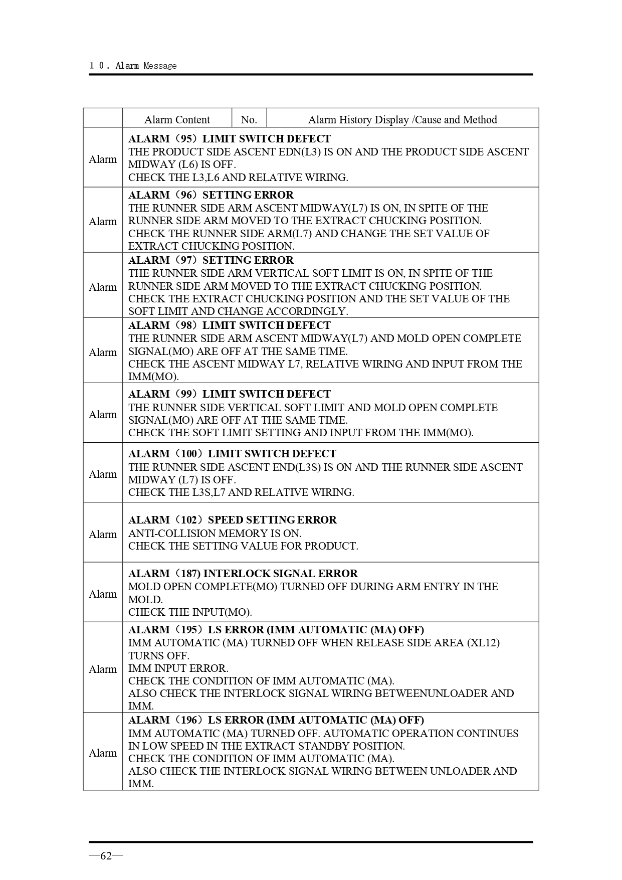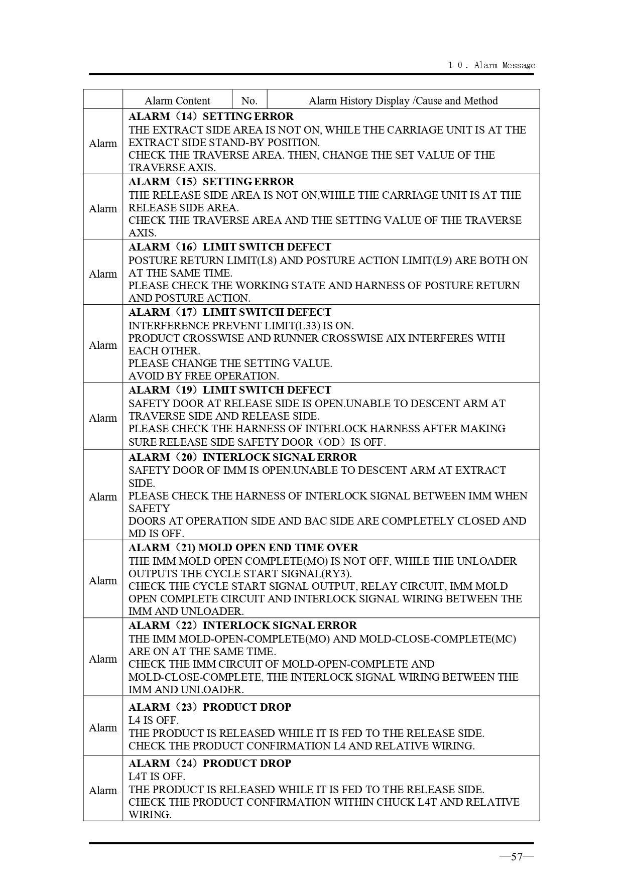 คำอธิบายทั่วไปเกี่ยวกับข้อความแจ้งเตือนเมื่อเกิดความผิดปกติ สำหรับรุ่น VK Series